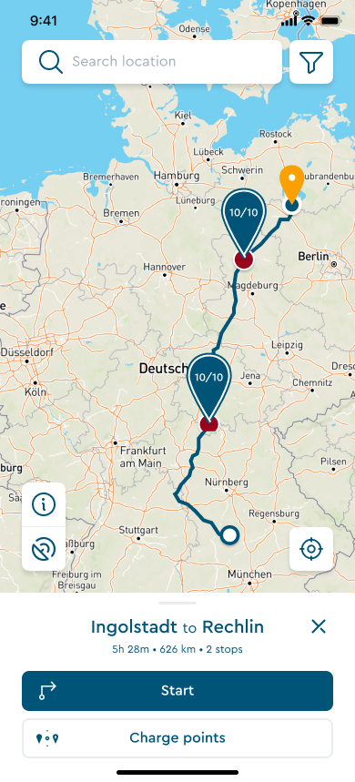 Optimize the route to your destination by adding suitable charging stops along the way.