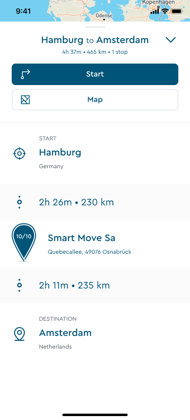 Export your route to familiar navigation apps on your smartphone and start driving.
